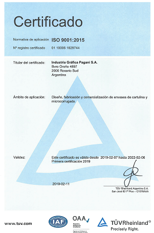 En septiembre del año 2004; nos comprometimos con la calidad total de los productos entregados a nuestros clientes; CERTIFICANDO bajo el alcance de Estándar 9001:2000 en todos sus procesos: "Diseño, desarrollo, producción y comercialización de envases en cartulina y microcorrugado".